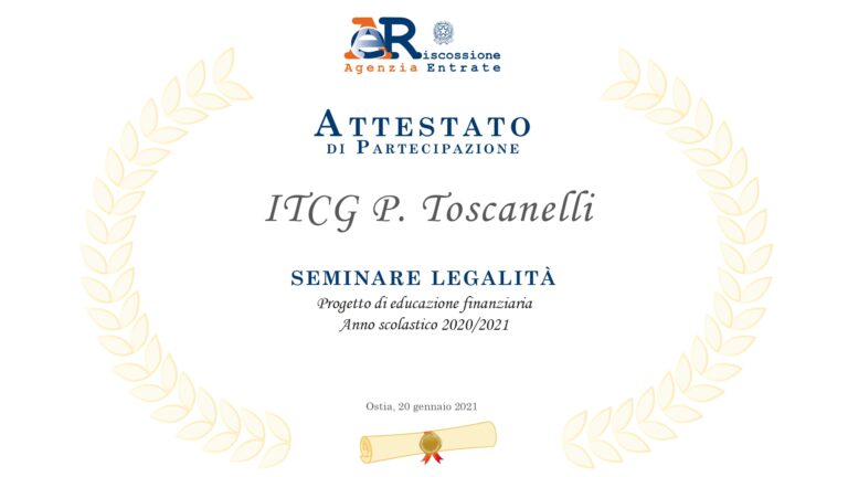 L’Istituto P.Toscanelli ha partecipato anche quest’anno scolastico 2020-21 , per il 2 anno consecutivo, al progetto Seminare legalità  dell’Agenzia delle Entrate –Riscossione .